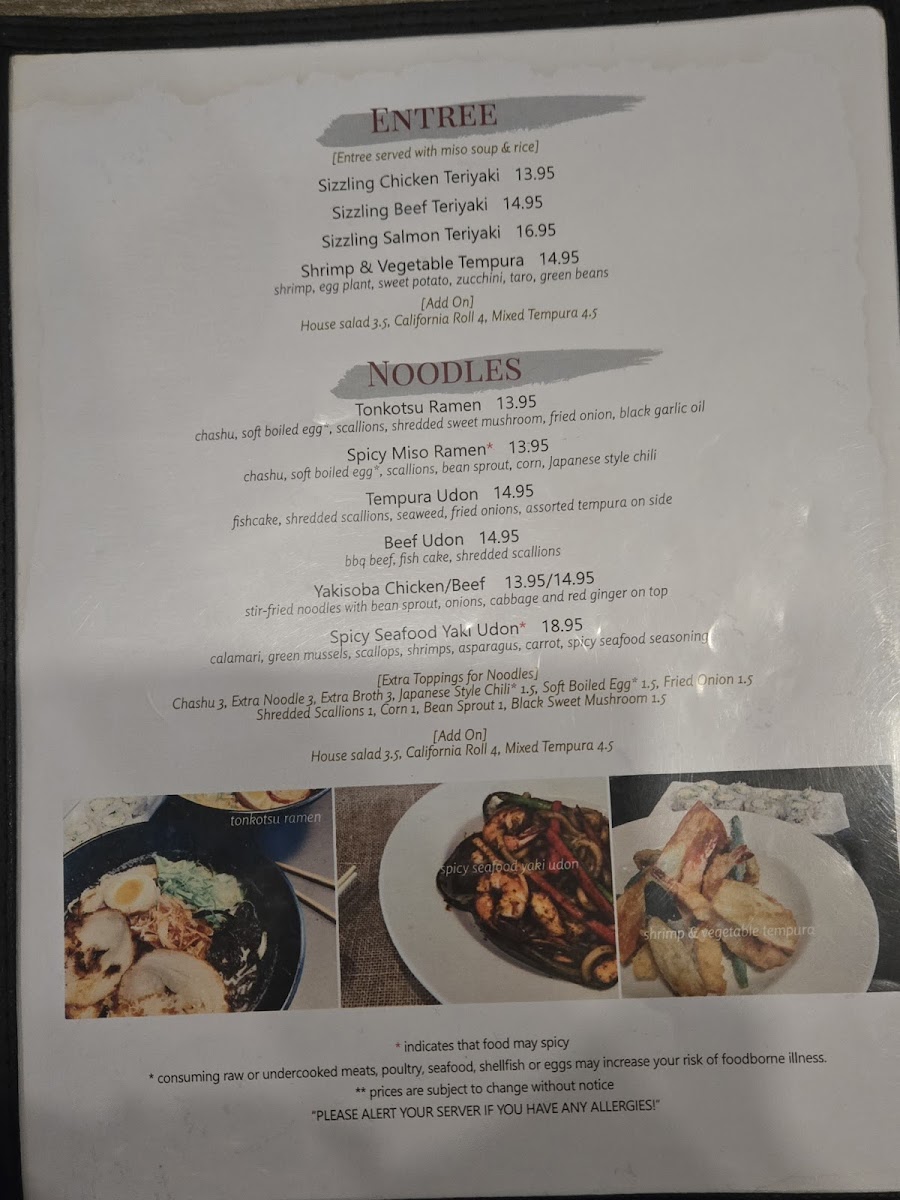 As you peruse the menu, you will be enchanted by a selection of dishes that promise an unforgettable experience. The Sizzling Chicken Teriyaki, served with flavorful miso soup and fluffy rice, is a local favorite at just US$13.45. For seafood lovers, the Sizzling Salmon Teriyaki gracefully showcases tender salmon at US$16.45, while the Shrimp & Vegetable Tempura delights with its crispy textures, also accompanied by miso soup and rice for US$14.45.